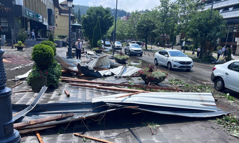 Furtună extrem de violentă a lovit astăzi orașul Sinaia, provocând pagube majore în mai multe zone. Sunt 14 persoane care au fost asistate de către echipajele SMURD și cele ale Serviciului de Ambulanță Județean Prahova.