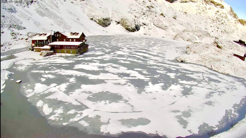 A fost cea mai friguroasă noapte de 12 mai din ultimii 46 de ani la Bâlea Lac. Stratul de zăpadă măsoară 6 centimetri la peste 2.000 de metri altitudine, în Munţii Făgăraş