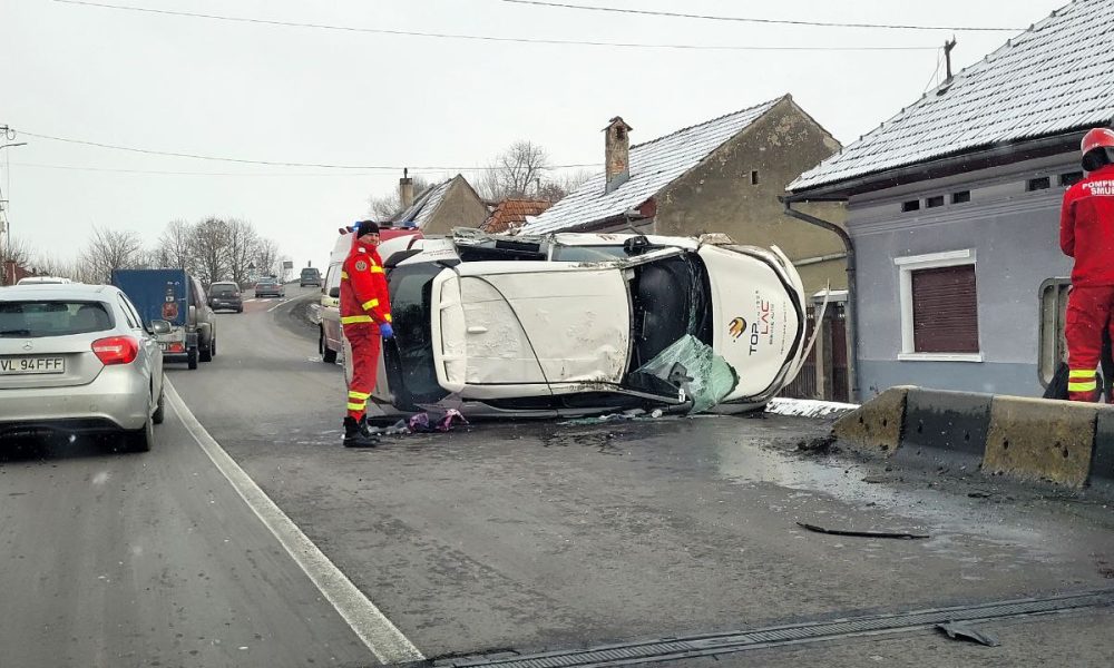 Accident pe DN 1, în comuna Olteţ! O maşină în care erau patru persoane s-a răsturnat