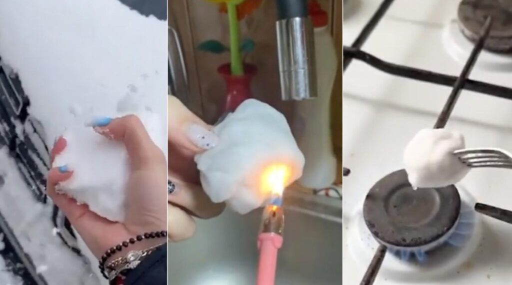 Pentru că nu au minime cunoștințe de fizică, unii români au început să se minuneze pe TikTok că zăpada nu se topește rapid. În încercarea de a demonstra că ninsoarea ar fi artificială și contaminată cu plastic, unii o ard cu bricheta, alții o testează în chiuvetă sau chiar pe grătar.