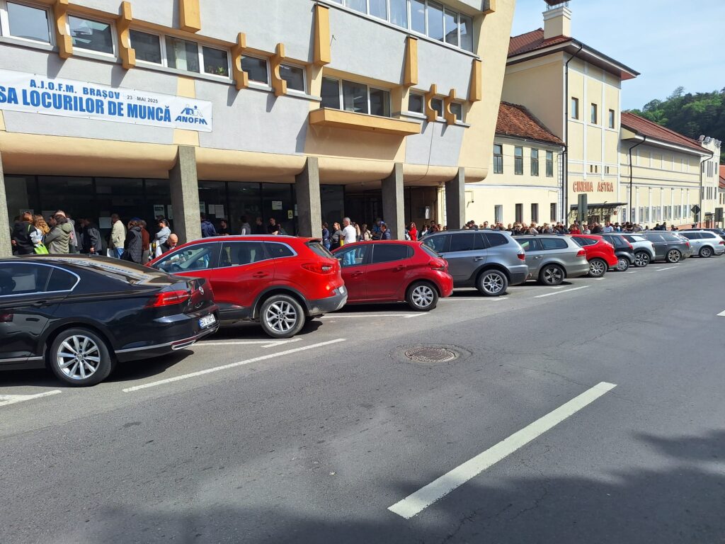 Sediul Agenției Județene pentru Ocuparea Forței de Muncă (AJOFM) Brașov a fost asaltat, astăzi, de brașovenii aflați în căutarea unui loc de muncă. Coada s-a format încă de dinaintea deschiderii Bursei generale a locurilor de muncă organizate de AJOFM Brașov.