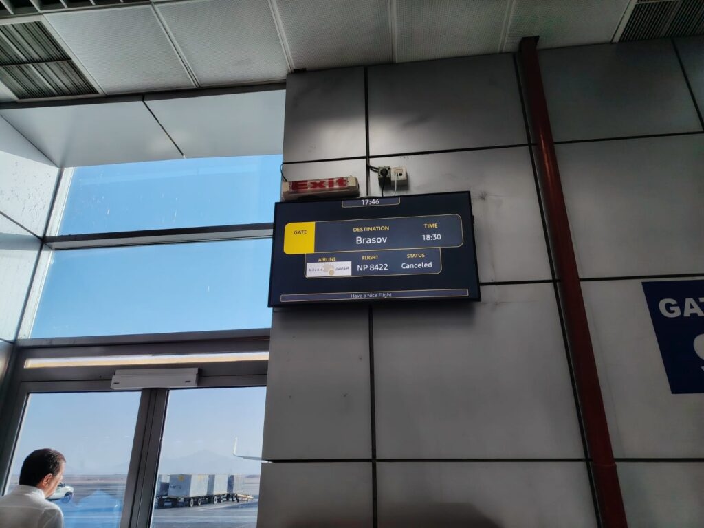 Un cititor Biz Brașov ne-a relatat că avionul cu care trebuiau să zboare de la Hurghada spre Brașov a aterizat cu ceva întârziere, după care o mulțime de tehnicieni au început să se învârtă în jurul aeronavei. După puțin timp, pe avizierul aeroportului a apărul anunțul că zborul este anulat.