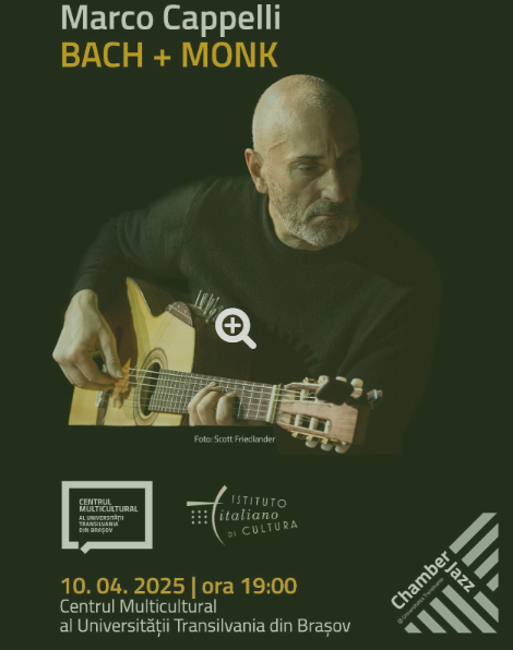 Chamber Jazz @ Universitatea Transilvania revine cu un nou concert care îl va aduce pe scena Centrului Multicultural pe Marco Cappelli și amplele sale rezonanțe de chitară solo.