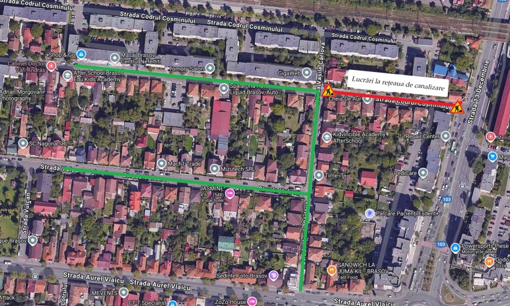 - pe sensul de circulație Codrul Cosminului – 13 Decembrie, ruta alternativă este V. Cârlova – A. Vlaicu