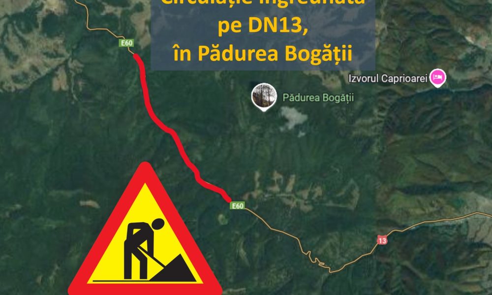 Traficul va fi îngreunat în cursul zilei de mâine, miercuri, 12.03.2025, pe DN 13, între Măieruș și Hoghiz, în zona Pădurii Bogății.