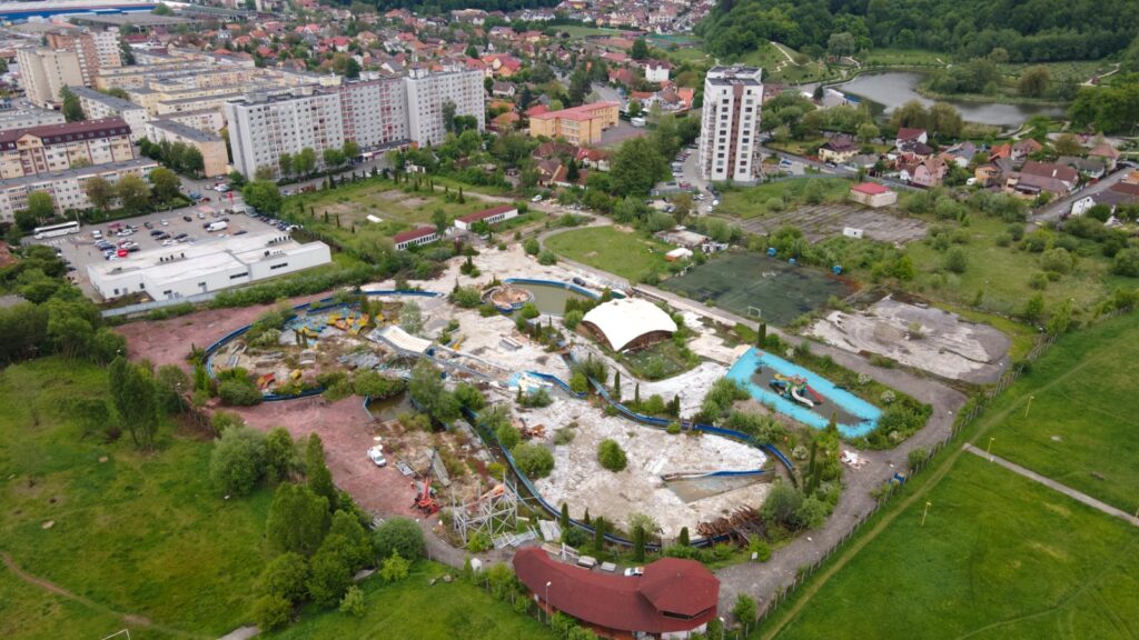 După finalizarea lucrărilor de evacuare a fostei infrastructuri a acqua park- ului, primăria va începe lucrările de amenajare a viitoarei zone de agrement.