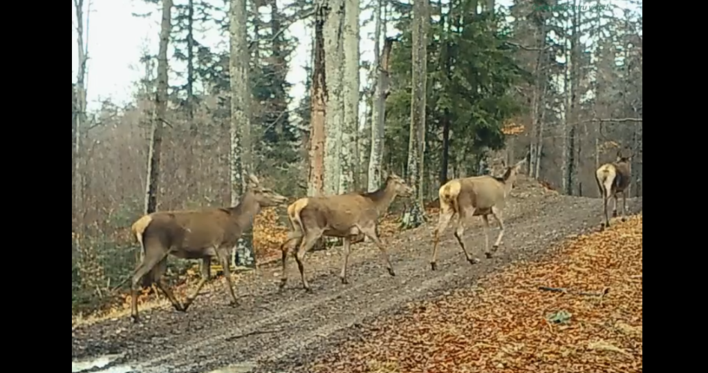 Ciopor de cerboaice, filmat de camerele de luat vederi instalate de rangerii din Parcul Natural Bucegi, lângă Brașov