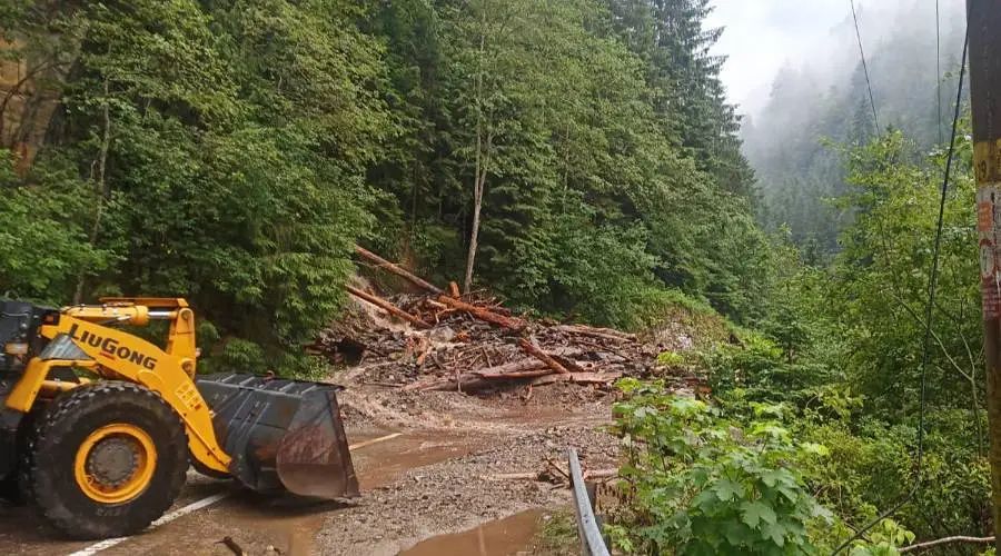 Incidentul s-a produs la kilometrul 95+700, unde drumul a fost blocat total pe ambele sensuri de deplasare. Un autoturism a rămas prins în zona afectată, însă, din fericire, șoferul nu a fost rănit.