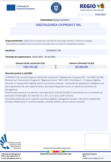COMUNICAT LANSARE PROIECT – DIGITALIZAREA CICPROIECT SRL