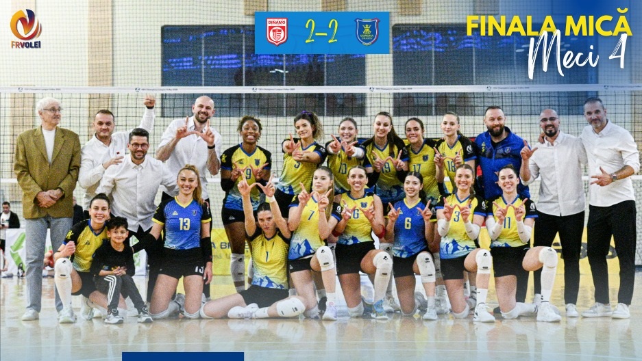 În finala mică de volei feminin, CSM Corona Braşov şi CS Dinamo Bucureşti sunt la egalitate, 2-2. Corona s-a impus cu 3-1 (25-16, 23-25, 25-20, 25-21), duminică, pe teren propriu, condusă de Simina Străchinescu şi Shayla Taylor Hoeft, cu câte 17 puncte.