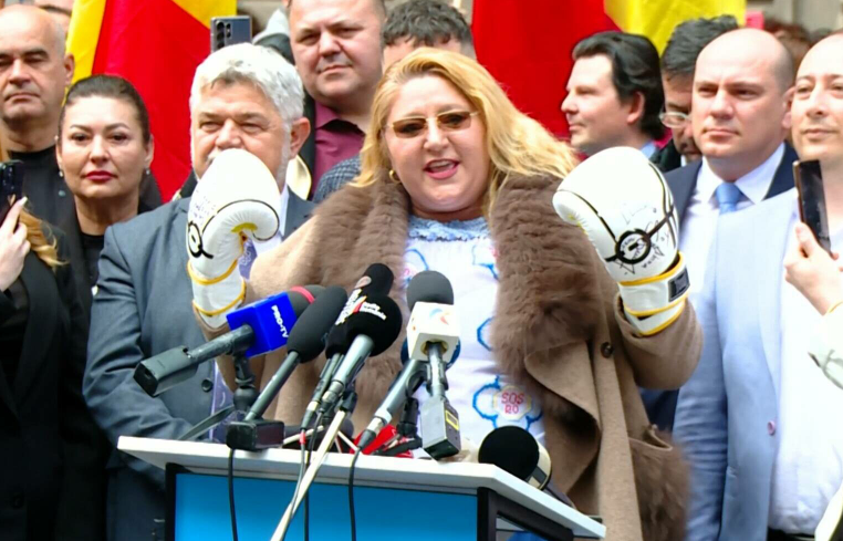Preşedinta S.O.S. România, Diana Şoşoacă, şi-a depus, azi, candidatura pentru alegerile prezidenţiale la Biroul Electoral Central. Șoșoacă a ajuns la BEC cu mânuși de box în mâini.