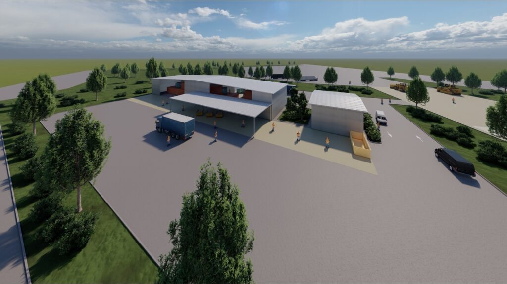 zona privată deșeuri în amestec – linia de sortare a deșeurilor în amestec, alături de spațiul de preluare a baloților de către operatorii economici. Tot în această zonă regăsim parcarea de utilaje și celulele de depozitare pentru compost;