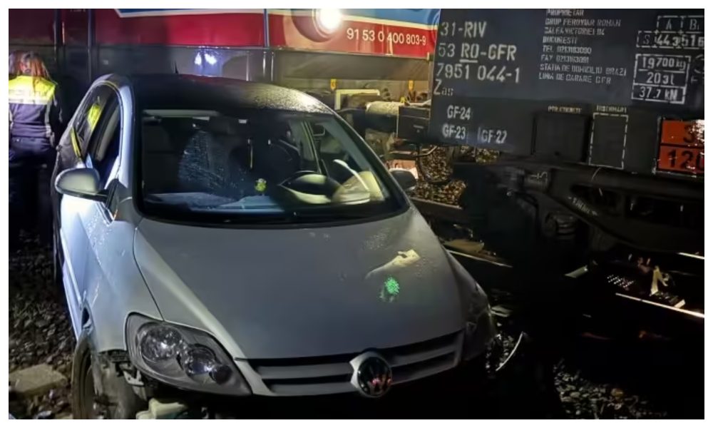 Două tinere au scăpat în ultima clipă din maşina care a fost lovită de tren la Buşteni