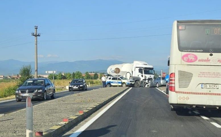Potrivit informațiilor transmise de Inspectoratul de Poliție Județean (IPJ) Sibiu, coliziunea a avut loc la kilometrul 282+200 m și a implicat un ansamblu de vehicule de mare tonaj și un autoturism.