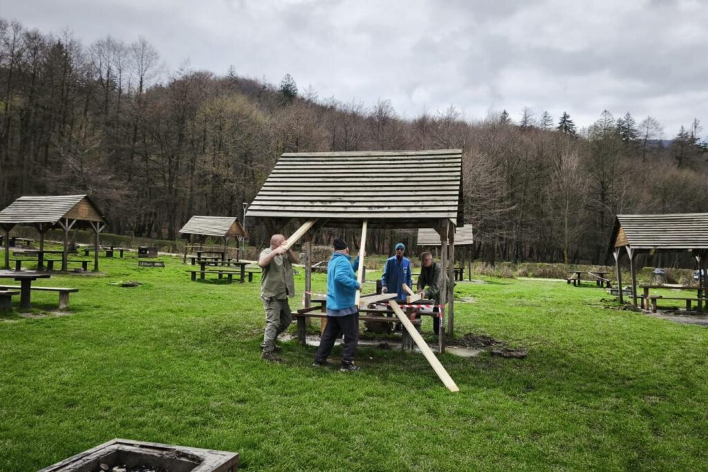 Foișoarele de la Lacul Noua, reparate, după ce s-au degradat, atât din cauza intemperiilor, cât și din cauza „petrecăreților”