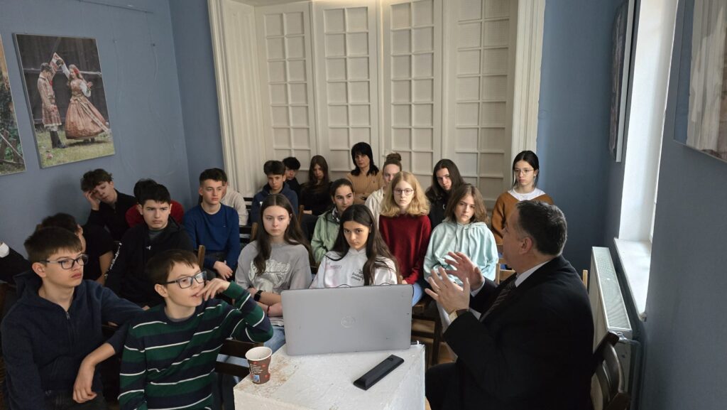 Elevii clasei a șaptea de la Colegiul Național „Andrei Șaguna” au fost invitați în „Casa Junilor”, pentru a participa la o prezentare despre originea și cultura cafelei, susținută de Alexandru Stănescu, managerul Muzeului de Etnografie din Brașov.