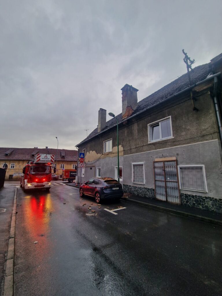 FOTO Se „dărâmă” casele pe mașinile de lux. Intervenție a pompierilor brașoveni pe strada Bisericii Române