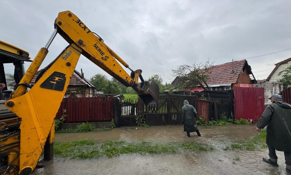 FOTO / Terenuri agricole și gospodării afectate de inundaţii în staţiunea Covasna. Militarii se alătură intervențiilor