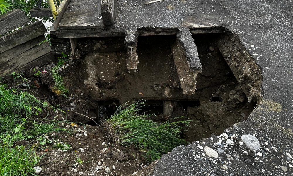 FOTO / Un pod peste râul Olt a fost distrus de ape, în judeţul Braşov
