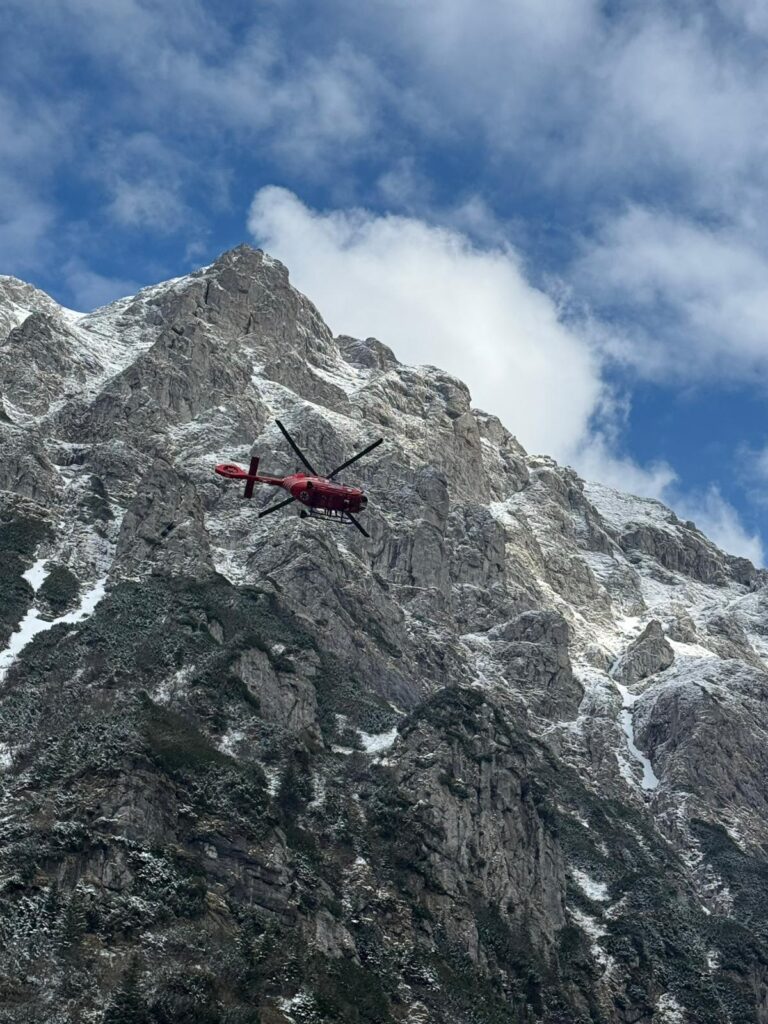 FOTO VIDEO Doi dintre cei patru turiști străini, care au rămas blocați în Masivul Bucegi, coborâți cu ajutorul elicopterului SMURD
