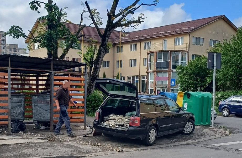 Gunoier de ocazie, dar cu „bun simț”! Bărbat prins că arunca moloz și pus să cureţe de Poliția Locală Brașov