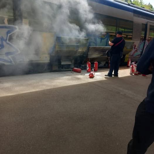 „În urmă cu puțin timp, pompierii militari din cadrul Detașamentului Sinaia au fost solicitați să intervină pentru localizarea și lichidarea unui incendiu care se manifesta la nivelul locomotivei unei tren de călători (care circula spre Brașov), în gara din orașul Sinaia.