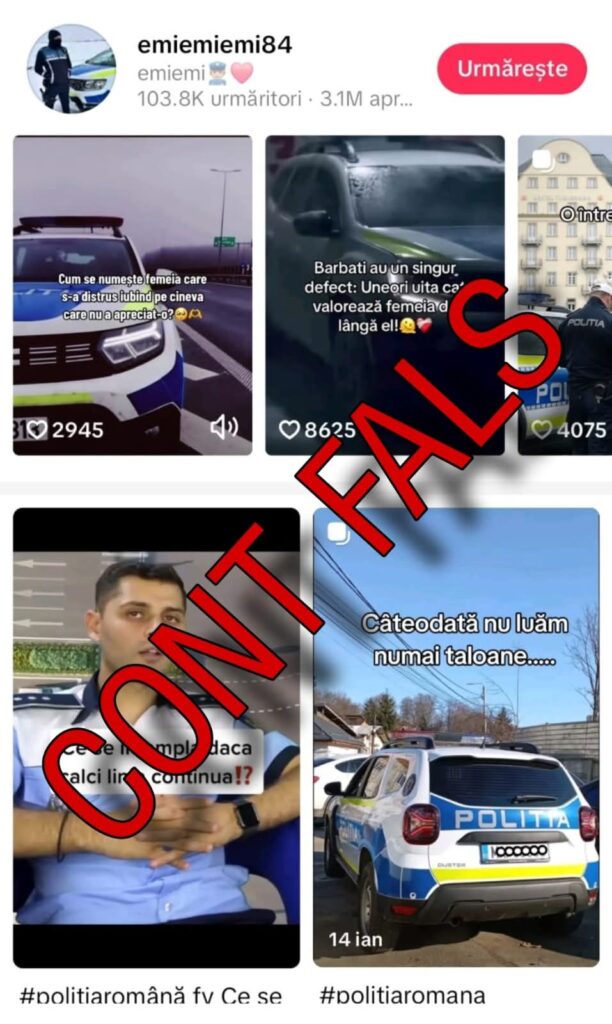 „Vă informăm asupra existenței unui ecosistem de conturi false pe rețeaua de socializare TikTok, conturi care sunt prezentate ca fiind ale unor agenți sau ofițeri de poliție sau chiar ca fiind pagini oficiale ale MAI sau structurilor din minister.