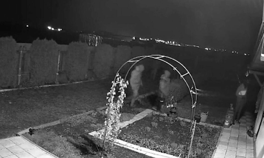 Imaginile au fost surprinse de o cameră de supraveghere acum o săptămână. Se vede cum mai mulți indivizi sar gardul într-o curte. În vreme ce unii verifică ușile și ferestrele, altul inspectează proprietatea. Sistemul de supraveghere detectează mișcare și declanșează alarma.