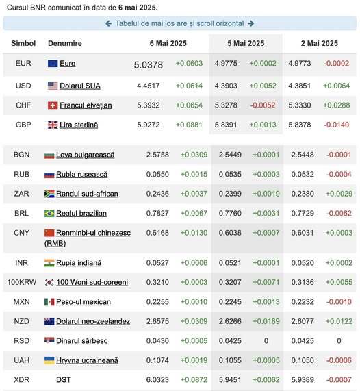 Banca Naţională a României a afişat, marţi, la ora 13.00, un curs valutar oficial, de referinţă, de 5,0378 lei pentru un euro, după ce în jurul prânzului pe piaţa interbancară fusese depăşit pragul psihologic de 5 lei.