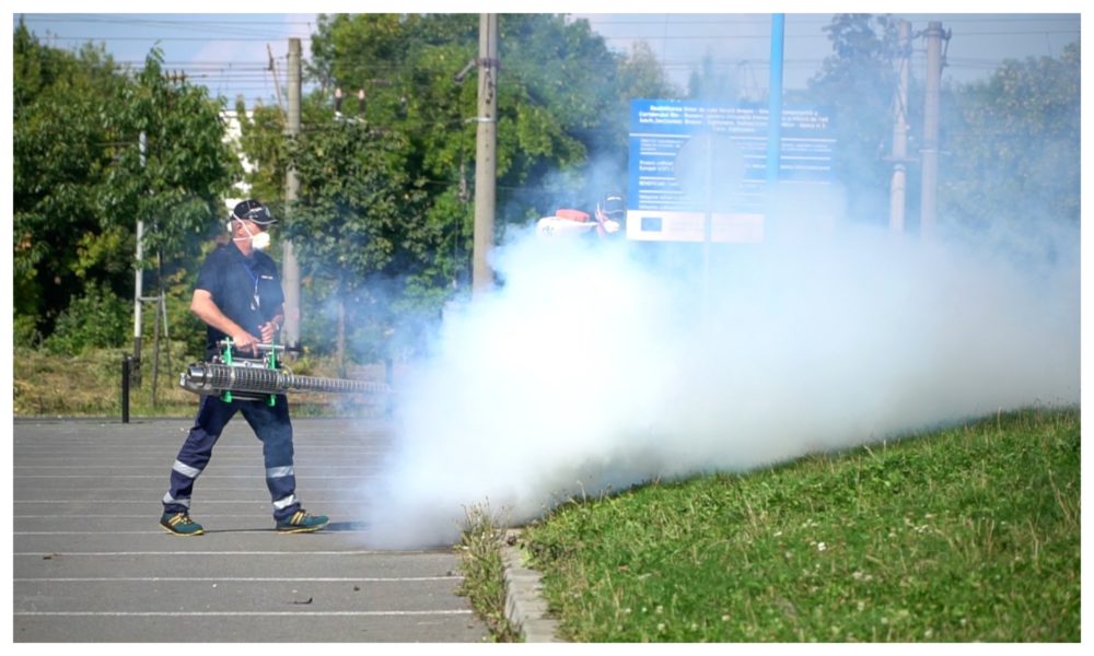 • Dezinsecția de la sol (zonele verzi dintre blocuri, din parcuri, locuri de joacă etc) se va desfășura cu un număr de 20 de echipe, care vor avea în dotare aparate portabile generatoare de ceață rece și caldă;