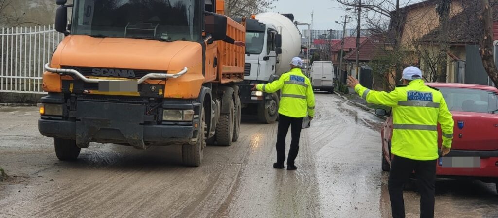 „Pândă” pe strada Cărămidăriei din Brașov. Polițiștii locali au început să descopere camioanele care circulă fără permise de liberă trecere