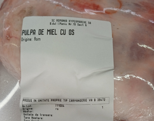 Spată de miel cu os – 57,90 lei/kg;