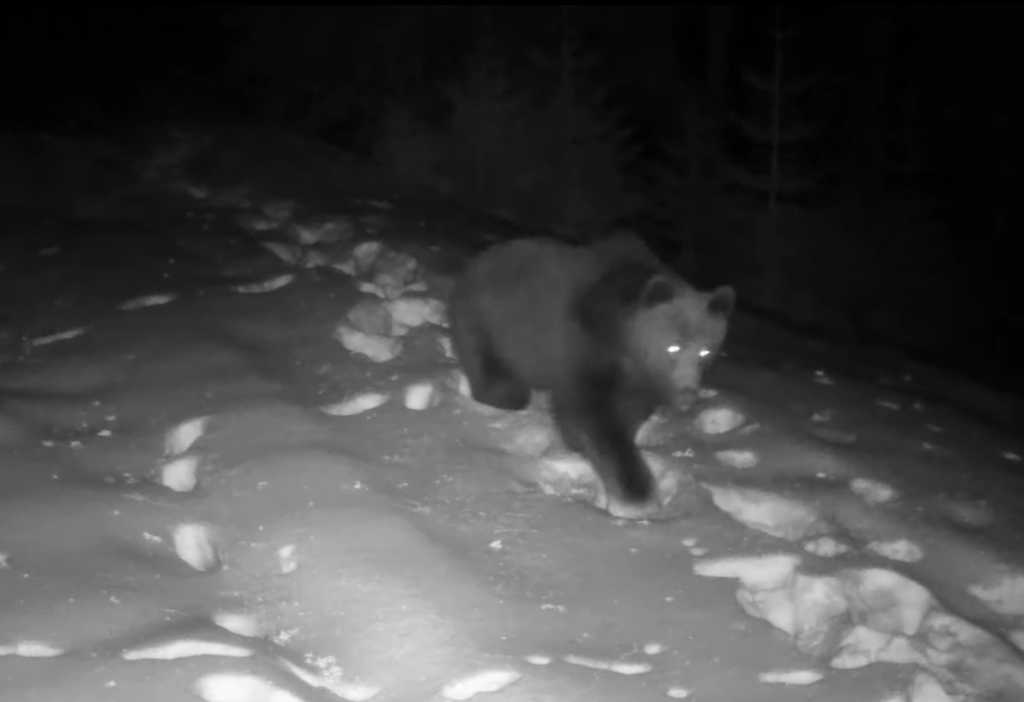 „Haita de lupi a trecut de doua ori pe aici, două exemplare de râs s-au cautat pentru a se împerecha, iar mai multe exemplare de urs au tot străbătut poteca.