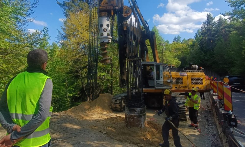 Lucrările de consolidarea a drumului spre Poiana Brașov, la Km 6+000, au ajuns în faza executării forajelor necesare turnării piloților care asigură rezistența zidului de sprijin pentru acest tronson de drum. Este vorba de 51 de piloți forați cu un diametru de aproape 1 metru. Obiectivul municipalității este ca începând cu luna august să se circule în deplină siguranță pe ambele benzi ale acestui sector de drum.