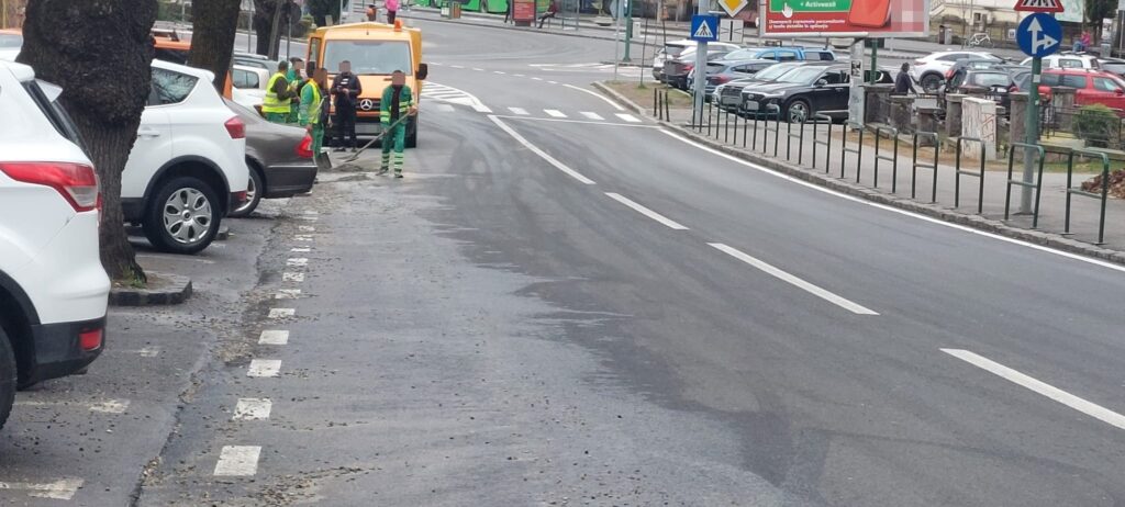„Materiale de construcții transportate, dar străzile rămân curate! Din păcate, nu așa s-au petrecut lucrurile în după-amiaza zilei de 26 martie. Din cauza condițiilor improprii de transport, dintr-o autospecială ce se deplasa pe Str. Șirul Livezii, s-a scurs beton pe carosabil pe o distanță de cca 50 de metri.