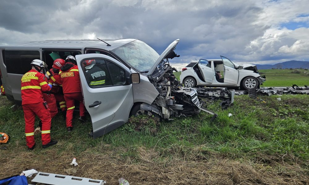 VIDEO / Accident mortal pe DN 13, în zona „Doripesco”! O persoană a murit după impactul dintre un microbuz şi un autoturism
