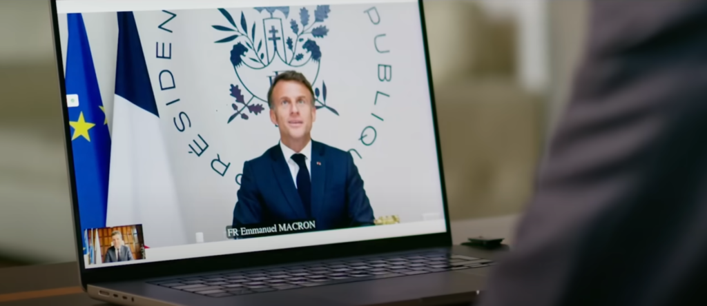 La începutul dialogului, Emmanuel Macron a început să vorbească în engleză. „Putem vorbi în franceză, dacă vreți”, îi spune Nicușor Dan. Ah, super, mulțumesc mult”, vine replica președintelui francez.