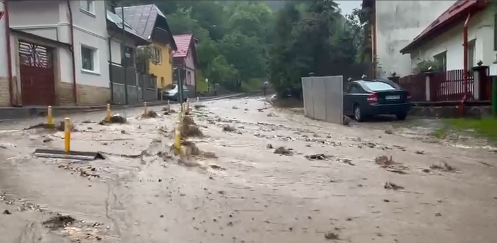 VIDEO Inundații în Șcheii Brașovului. Pârâul Graft a ieșit din matcă