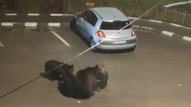 De frica urşilor, oamenii din Buşteni nu mai pot ieşi seara din case. În filmarea trimisă de un locatar afectat celor de la observatornews.ro, se aude cum oamenii au aruncat chiar şi cu petarde, însă cei patru urşi au fost de neclintit.