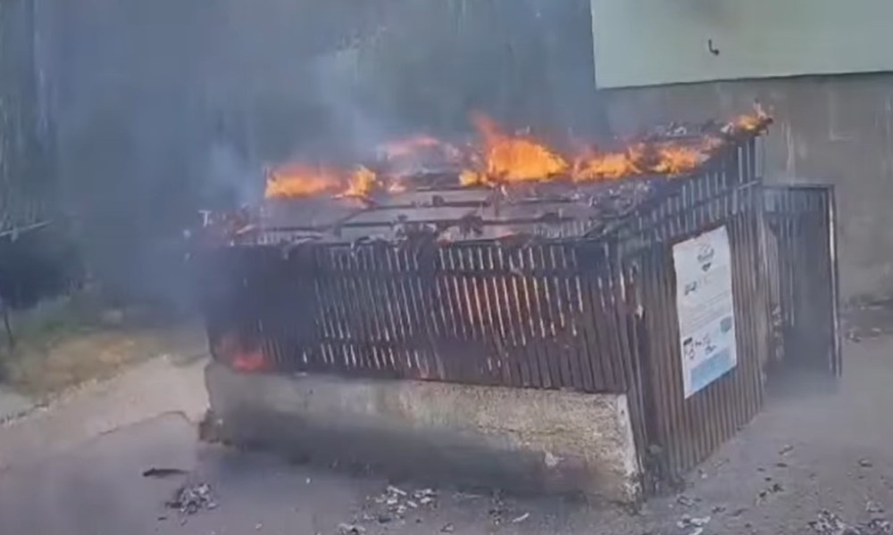 VIDEO / Un bărbat a incendiat intenţionat o ghenă de gunoi din Râşnov