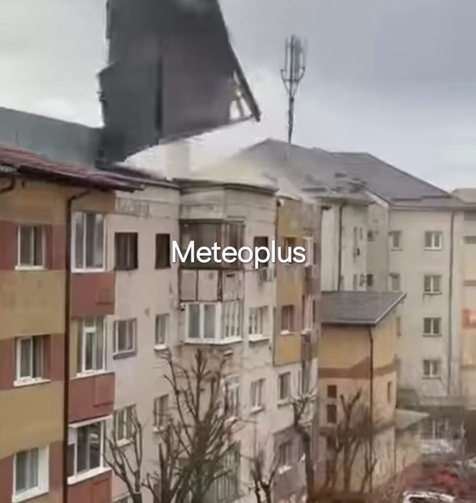Acoperișul unui bloc din Alba Iulia a fost luat de vânt și a căzut pe o mașină, incidentul fiind surprins pe o filmare. Furtuna a provocat mai multe pagube.